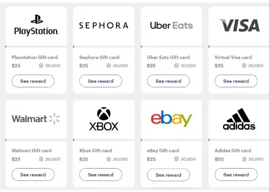 有 Cash reward、Gift card 两种方式可以选择,种类多样。